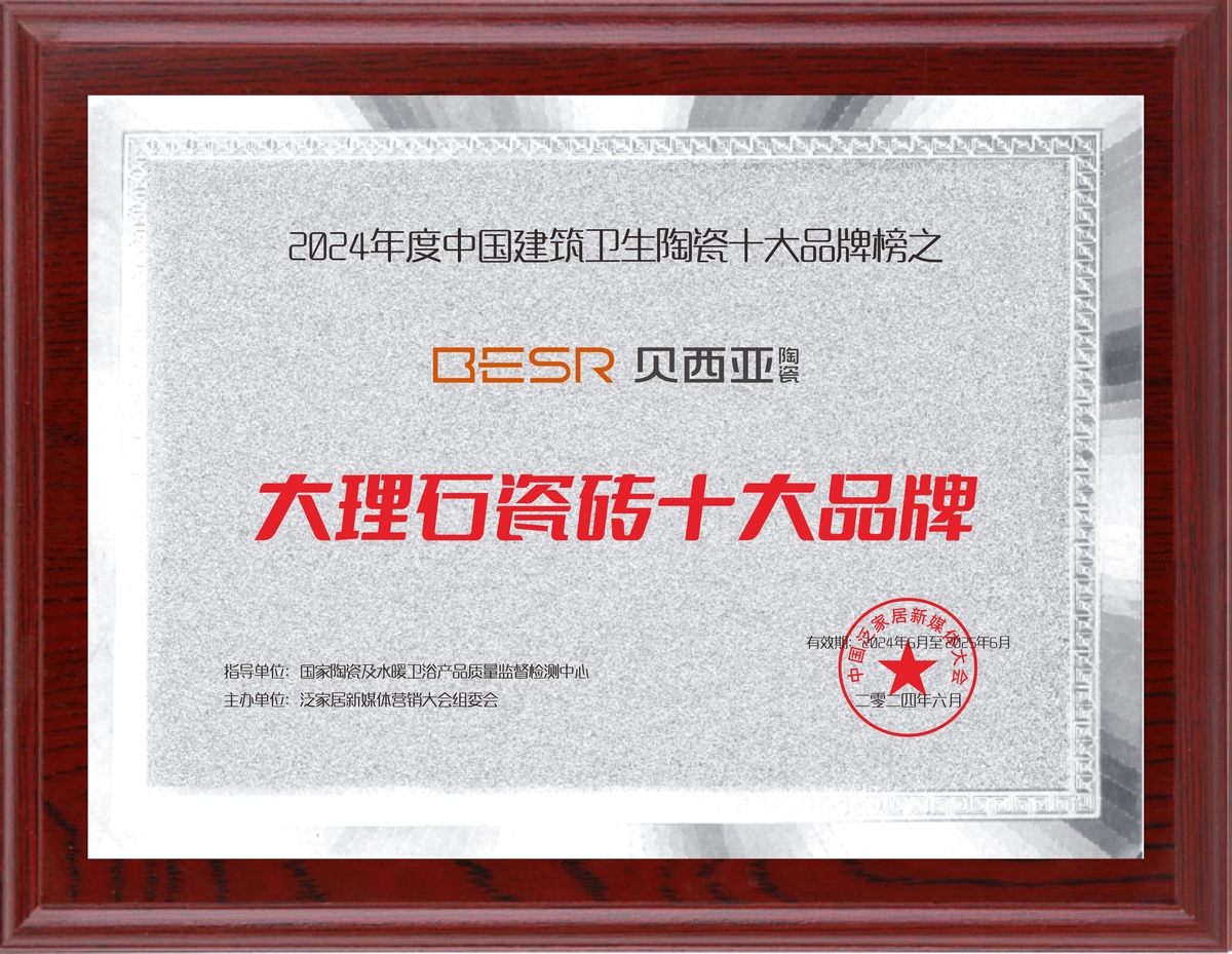 貝西亞陶瓷先后獲得行業“陶瓷十大品牌、瓷磚十大品牌、負離子大理石十大品牌、陶瓷十大創新品牌和現代磚十大品牌”等殊榮,經銷網絡遍布全國大中型城市,產品遠銷國內外,是深受國內外客戶信賴致力打造具有高端、藝術及時尚的輕奢品牌。 -